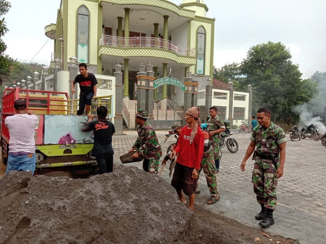 Mereka, Para anggota Satgas TNI Manunggal Membangun Desa (TMMD) reguler 107 seperti halnya membongkar pasir dari truk juga mau melaksanakan karena demi mewujudkan kemanunggalan TNI agar kehadirannya di tengah – tengah masyarakat selalu di dambakan oleh rakyat, hal itu bisa terlihat kerja bakti gotong royong yang di lakukan para anggota Satgas TMMD 107 Kodim 0722/Kudus bersama warga masyarakat di halaman Masjid JAMI’ NU AL ITTIHAD Desa Kedungsari Kecamatan Gebog Kabupaten Kudus.