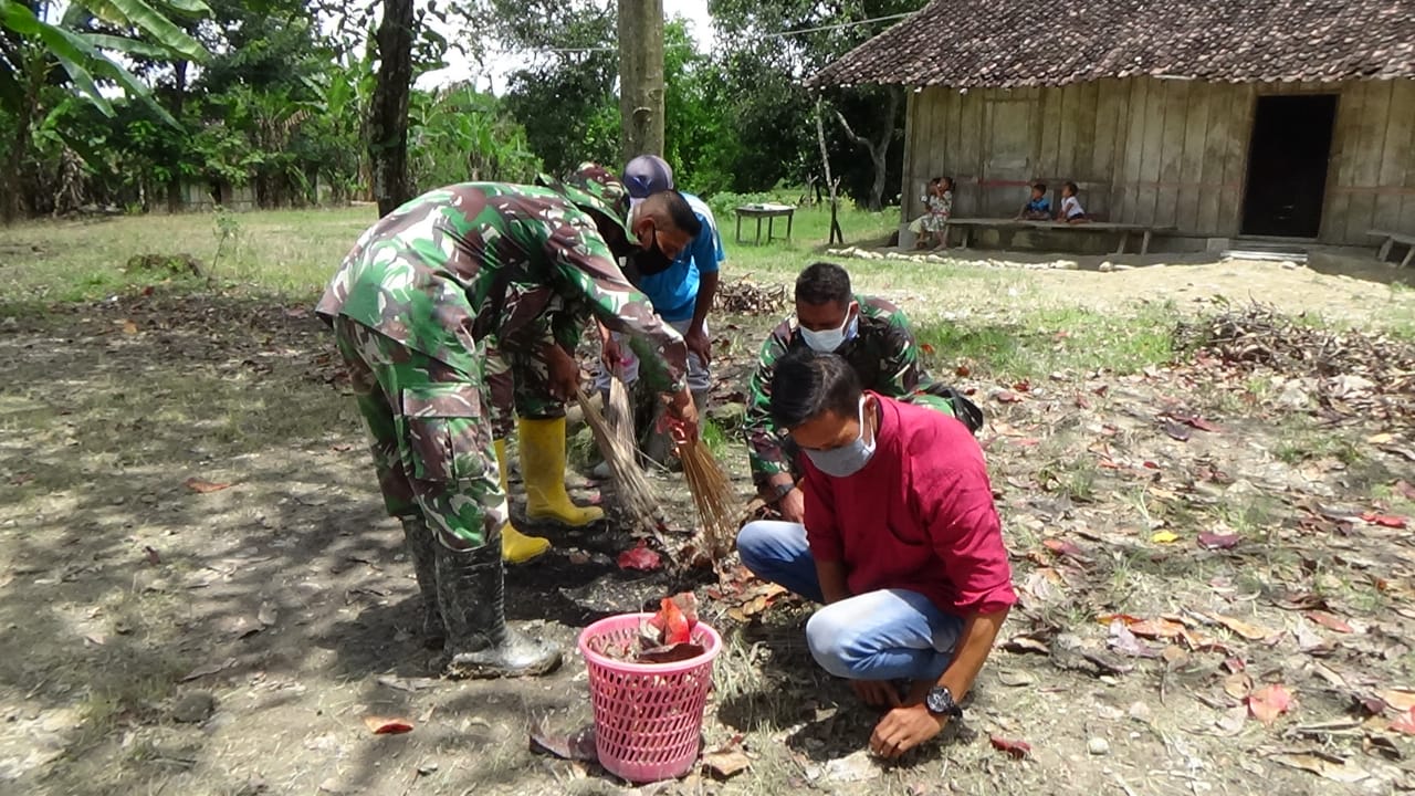 “Kali ini kami bergotong royong membersihkan sekitar halaman rumah Ibu Narti warga Ngrancang,” kata Sertu Edi.