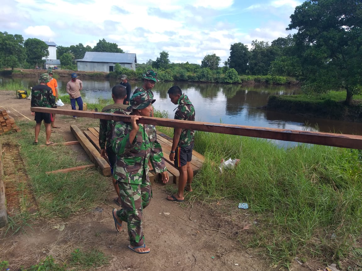 kapuas, pengerjaan jembatan di Handil Sekumpul terus dikebut oleh TNI dan warga, agar segera dapat mencapai target yang telah ditentukan. Saat ini seluruh TNI dan warga menyiapkan material kayu balok untuk lagor jembatan.