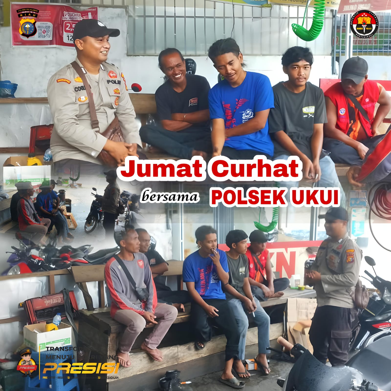 Jumat curhat polsek ukui kali ini dilaksanakan oleh Bripka Coolman Manulang menggelar jumt curhat di bengkel ricky bersama pemuda kelurahan ukui, ianya sempatkan diri berbincang dengan warganya terkait situasi kamtibmas diwilayah kecamatan ukui secara umum, Jumat 25 Agustus 2023.