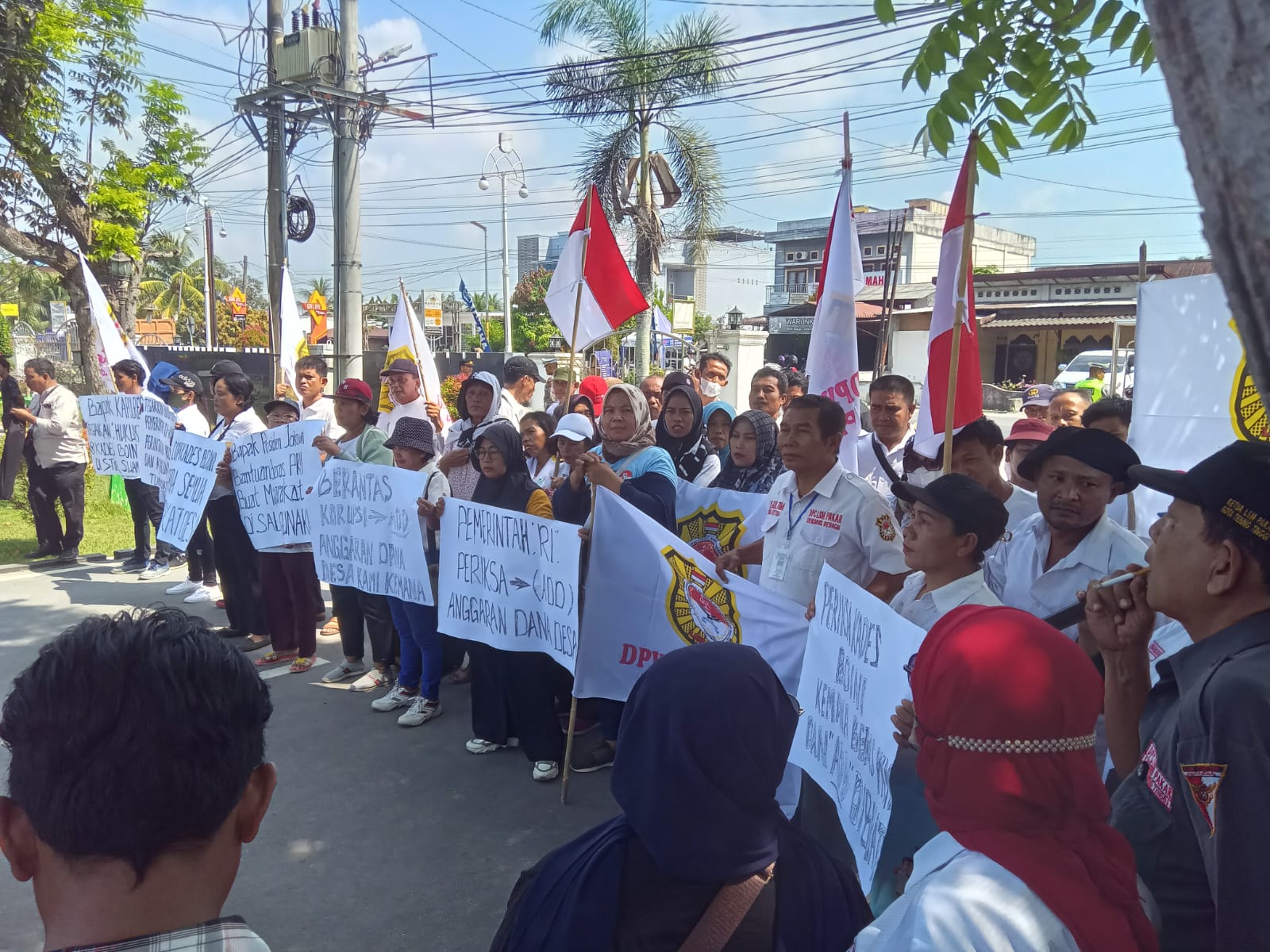 Tebing Tinggi, newshanter.com -Masyarakat Desa Penggalangan Kecamatan Tebing Syahbandar Kabupaten Serdang Bedagai melaksanakan aksi damai di kantor Bupati Serdang Bedagai Sumatera Utara,Kamis (29/02/2024).