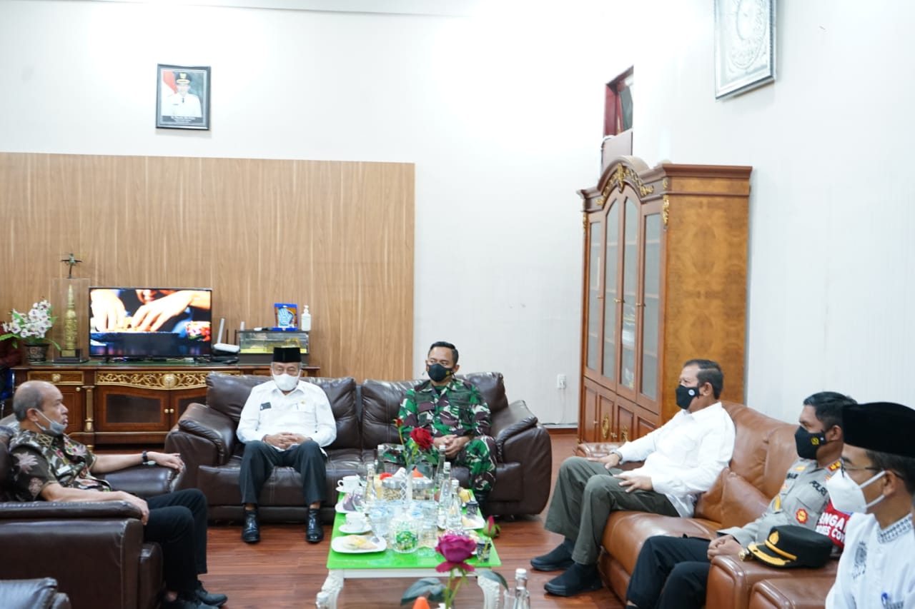 Masuk pada topik khusus vaksinasi, sesuai dengan maksud kedatangan Kabinda, Bupati Mursil menyampaikan kondisi terkini proses percepatan vaksinasi Covid-19.