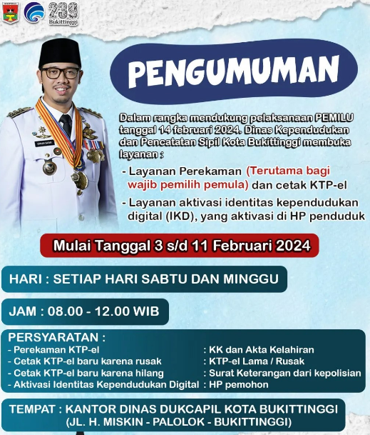 Pelayanan ini dibuka khusus untuk perekaman terutama bagi wajib pemilh pemula dan cetak KTP – el dan layanan aktivasi identitas kependudukan digital (IKD), yang diaktivasi di hp penduduk.