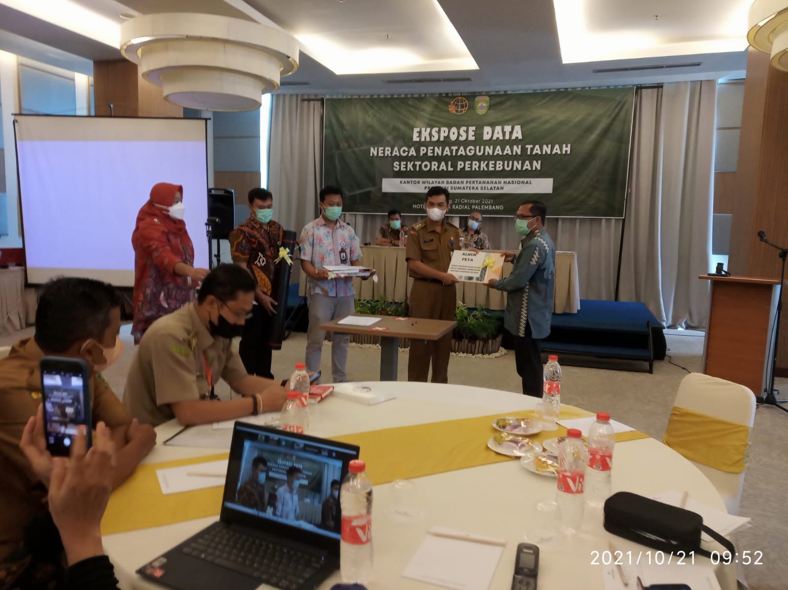 Palembang,newshanter.com – Dinas Perkebunan Provinsi Sumatera Selatan (Sumsel) mewakili daripada Pemerintah provinsi (pemprov) membuka kegiatan pembukaan rapat ekspose data penyusunan neraca penatagunaan tanah perkebunan provinsi Sumsel tahun anggaran 2021 yang diselenggarakan oleh Badan Pertanahan Nasional provinsi Sumsel, bertempat di ballroom Santika Hotel Radial Palembang, Kamis (21/10/2021).
