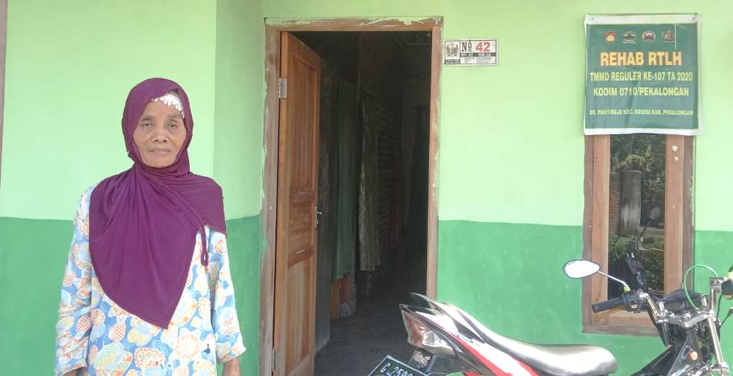PEKALONGAN, Newshanter.com –TMMD Reguler ke-107 Kodim 0710/Pekalongan, Desa Pantirejo, Kecamatan Kesesi, Kabupaten Pekalongan, Jawa Tengah, sudah resmi ditutup sekitar 5 hari lalu. Namun Warsumi (67), warga Dukuh Sutosari, RT.02 / RW 04, Ds.Pantirejo,Desa Pantirejo, Kecamatan Kesesi, Kabupaten Pekalongan, Jawa Tengah, masih merasakan kebahagiaan luar biasa.