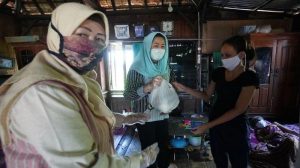“Kami disini mewakili pak Gubernur nak bagike beras dan sembako untuk ibu-ibu, nah ini jugo kami kasih tongkat buat ibu biar biso jalan dengan baek, semoga ibu sm keluargo sehat terus.” ujar Feby