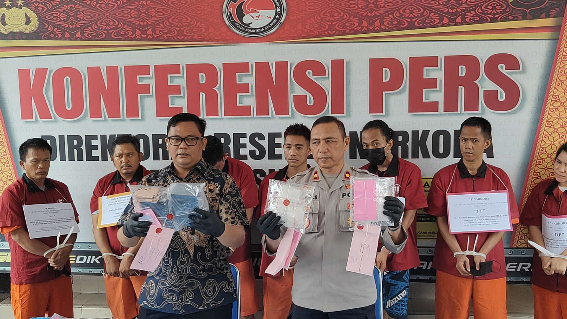 Kemudian, tersangka W dan MR ditangkap pada 9 Agustus 2024 di Talang Keramat. Tersangka A, R, dan J ditangkap pada 13 Agustus 2024 dengan barang bukti sabu seberat 485 gram.