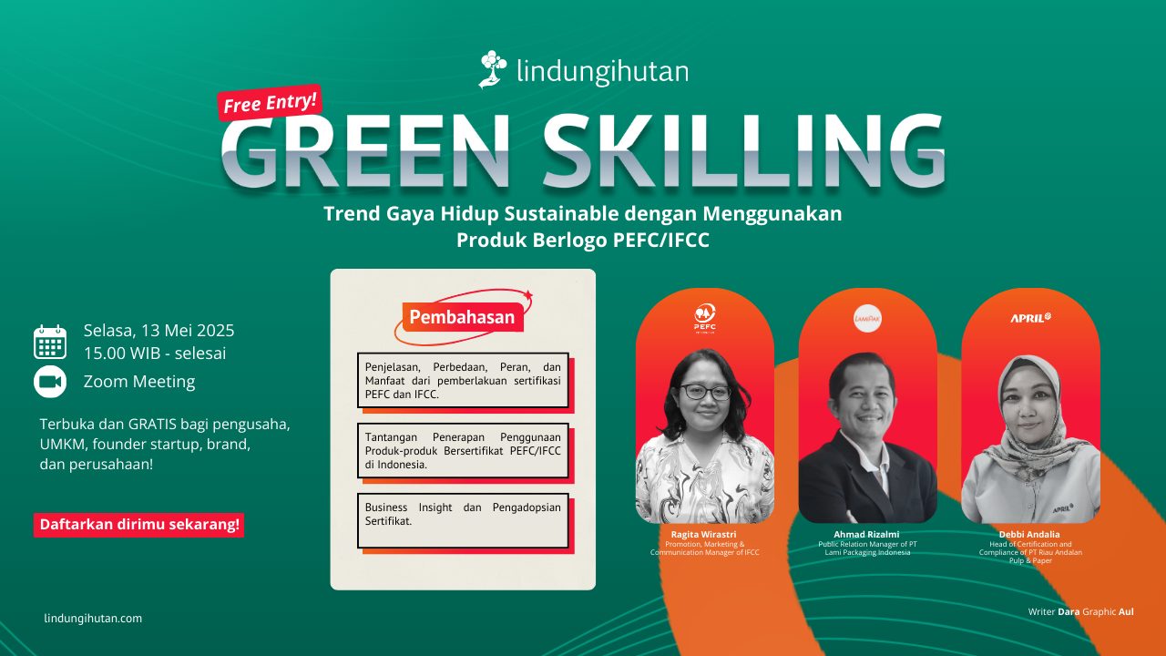 Semarang, 13 Mei 2025 — Menjawab tren gaya hidup ramah lingkungan dan kesadaran konsumen akan pentingnya keberlanjutan, LindungiHutan kembali menggelar Green Skilling edisi ke-18 dengan tema “Trend Gaya Hidup Sustainable dengan Menggunakan Produk Berlogo PEFC/IFCC” pada Selasa, 13 Mei 2025, pukul 15.00 WIB secara daring.
