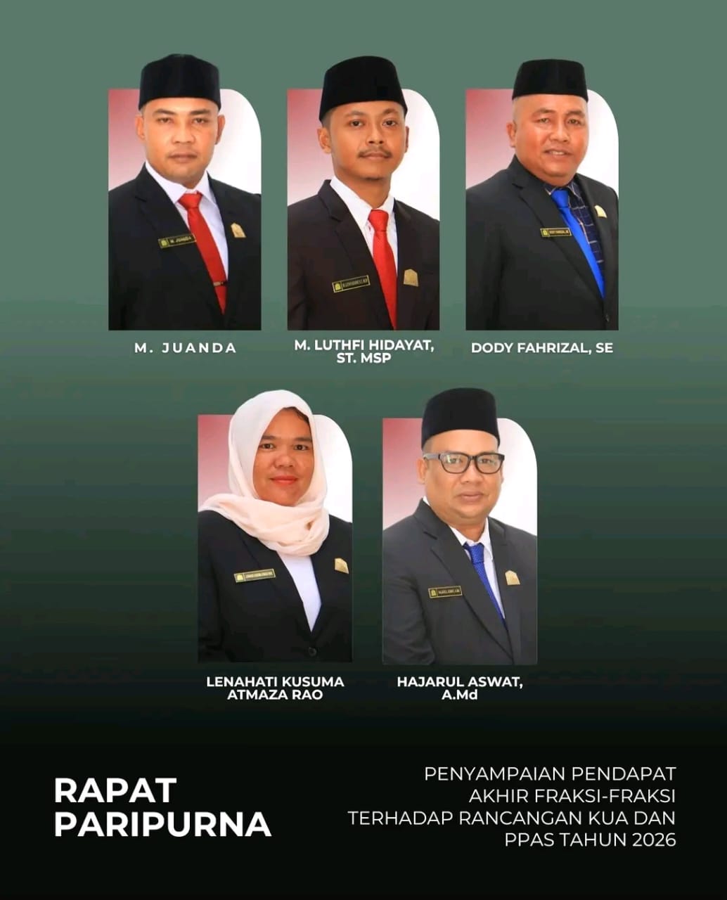 Dari Fraksi Partai Demokrat melalui juru bicaranya, Dody Fahrizal, SE, memberikan apresiasi terhadap kerja keras Pemerintah Kabupaten Aceh Tamiang dalam menyusun dokumen KUA dan PPAS Tahun 2026.
