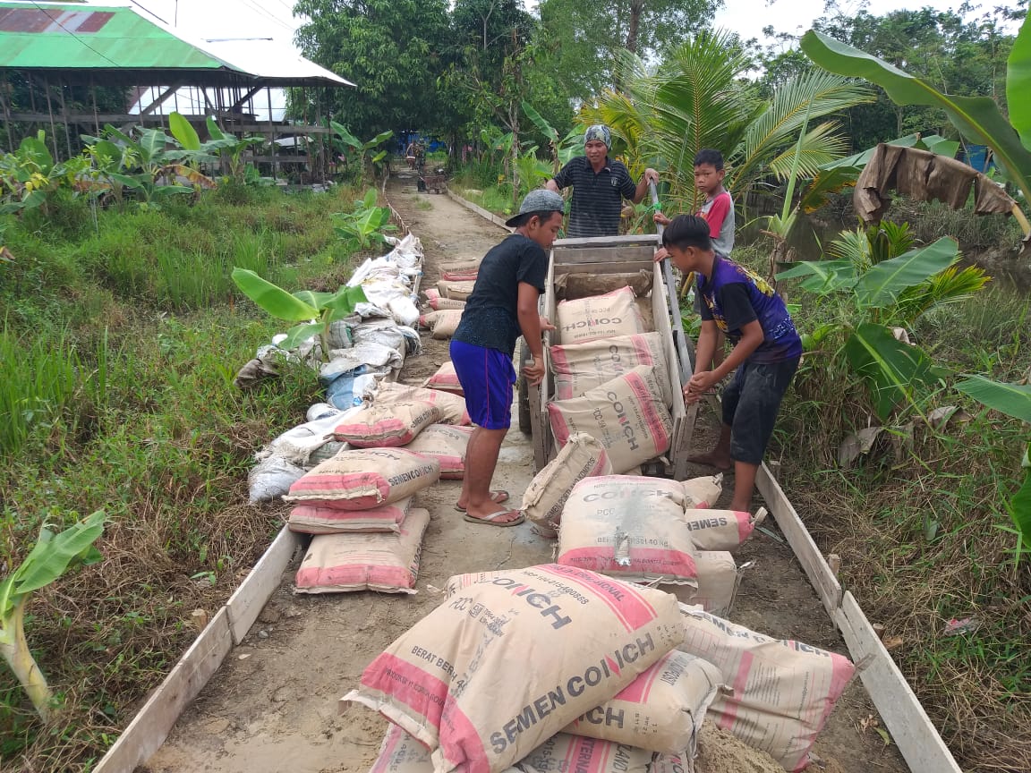 Kapuas,- Untuk mempercepat pembangunan fisik, Satuan Tugas TNI Manunggal Membangun Desa (TMMD) ke 110, Kodim 1011/KLK melakukan droping puluhan sak semen ke lokasi pembangunan jalan usaha tani sepanjang 1200 meter, di Desa Saka Lagun, Kecamatan Pulau Petak, Kebupaten Kapuas, Minggu (28/3/2021).