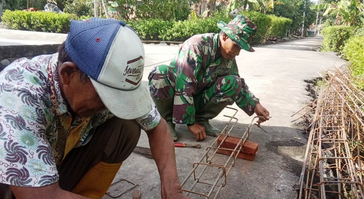 Adalan Asmawi (57), salah seorang sosok tukang asli Desa Pantirejo, dan Sertu Usman Gumanto, Satgas TMMD yang sehari-hari dinas di Kodim Pekalongan. Keduanya yang pegang peranan dalam perakitan besi kolom untuk kerangka cor beton, saat merehab rumah Sri Puji Astuti, warga Dukuh Jlubang RT 02/RW 01, Desa Pantirejo.