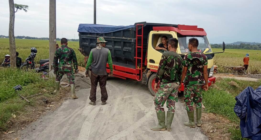 PEKALONGAN, NH- Untuk mendukung pembangunan jalan di Desa Pantirejo, Kecamatan Kesesi, Kabupaten Pekalongan, Jawa Tengah, sasaran pokok TMMD Reguler ke-107 Kodim 0710/Pekalongan, sejumlah material terus digelontorkan ke lokasi TMMD.