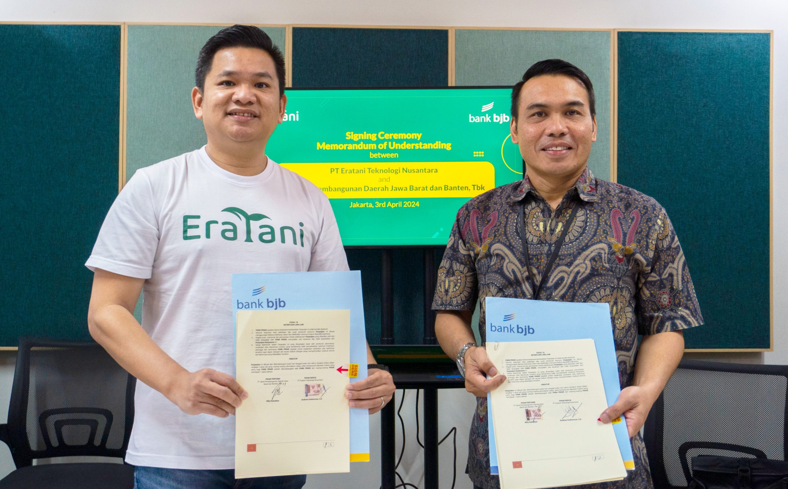 Jakarta, newshanter.com – PT Eratani Teknologi Nusantara, perusahaan teknologi pertanian yang memberikan pendampingan dari hulu ke hilir, resmi menjalin kemitraan dengan Bank BJB untuk memberikan akses pembiayaan kepada petani yang tergabung dalam ekosistem Eratani melalui skema Kredit Usaha Rakyat (KUR) Mikro dan Super Mikro. Kerja sama ini ditandai dengan penandatanganan MoU (Memorandum of Understanding) oleh CEO Eratani dan Pemimpin Bank BJB Kantor Cabang Daan Mogot. Kerja sama ini merupakan upaya untuk mendorong para petani agar terhindar dari pilihan pembiayaan yang membebani dengan harapan dapat meningkatkan produktivitas serta kesejahteraan para petani dalam jangka panjang.