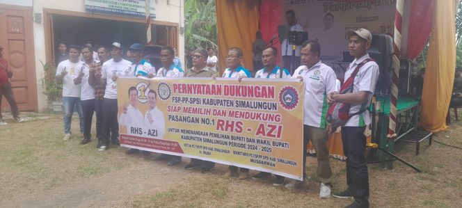 Simalungun, newshanter.com – Federasi Serikat Pekerja Pertanian dan Perkebunan, Serikat Pekerja Seluruh Indonesia (FSP.PP.SPSI) Kabupaten Simalungun yang berkantor di jalan Medan KM.10,5 Sinaksak, Kecamatan Tapian Dolok, Kabupaten Simalungun, Sumatera Utara, menggelar acara Pendeklarasian untuk mendukung dan memenangkan pasangan calon Bupati dan Wakil Bupati Simalungun RHS-AZI pada 27 November 2024 mendatang.