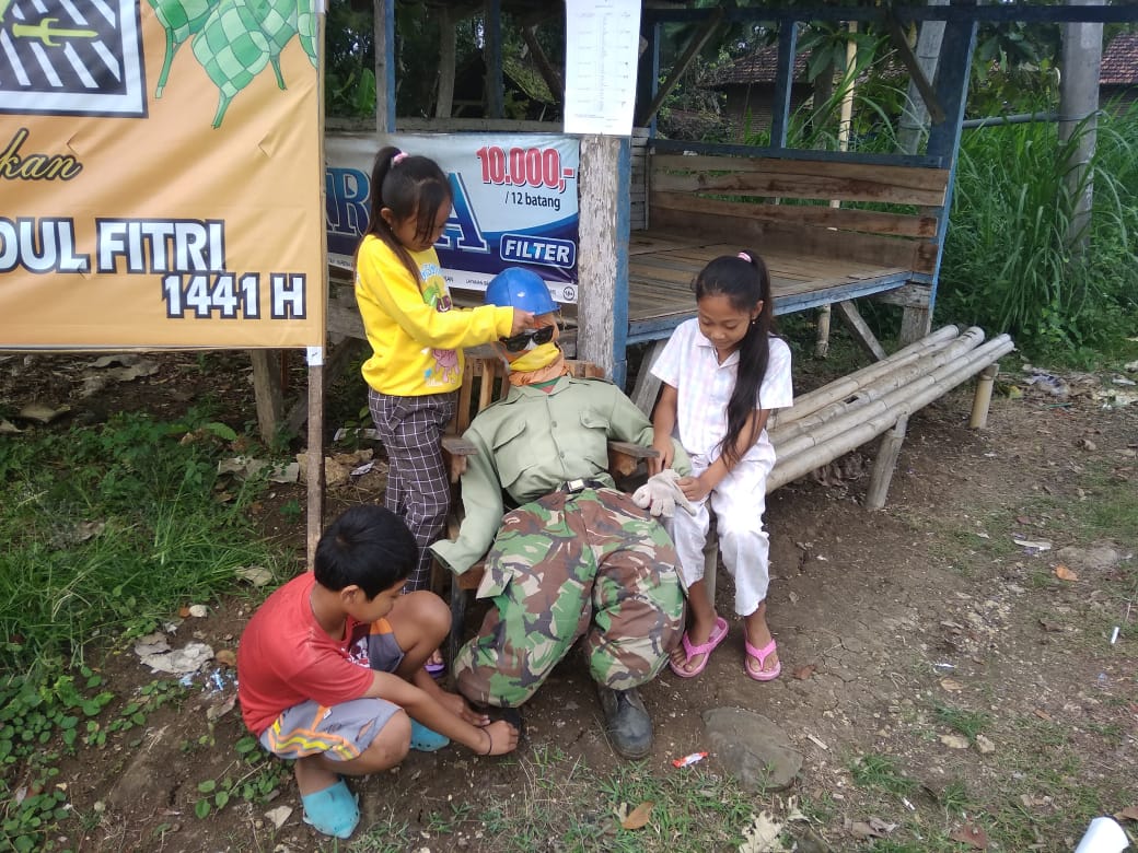 “Ternyata anak-anak desa di sini sangat kreatif dalam melakukan ketrampilan. Buktinya patung ini nampak kelihatan hidup dan terkesan seperti orang yang sedang duduk,” kata Serda Sugeng.