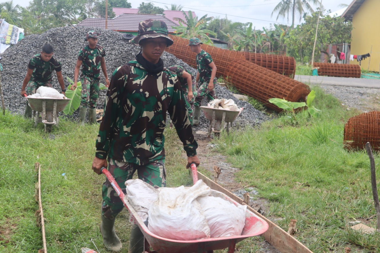 Kapuas,- Ketangguhan gerobak dorong jenis arco sangat membantu satgas TMMD 110 Kodim 1011/KLK untuk mempercepat pembangunan fisik yakni pengecoran jalan, dan pembuatan jamban di Desa Saka Lagun, Kecamatan Pulau Petak, Kabupaten Kapuas yang merupakan sasaran pembangunan TMMD tahun anggaran 2021.