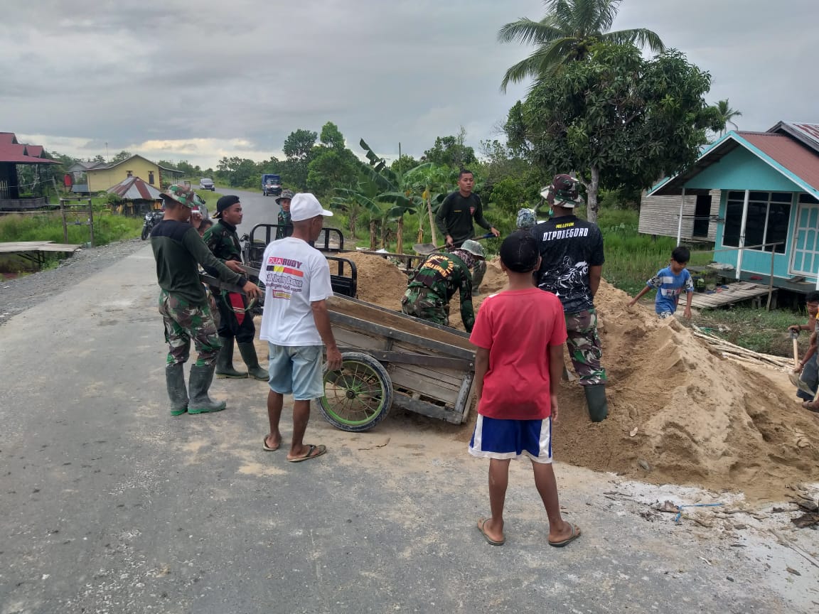 Tidak terkecuali di pelaksanaan program TMMD Reguler 110, Kodim 1011/KLK yang sedang membangun jalan usaha tani sepanjang 1200 meter, beserta sarana penunjangnya seperti pembangunan Mushola, serta pembangunan jamban dan jembatan.