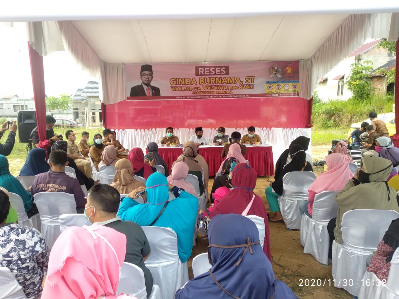 Wakil ketua DPRD kota Pekanbaru GINDA BURNAMA St Fraksi Partai Gerindra Dapil VI Kecamatan Senapelan dan payung sekaki gelar kegiatan jemput aspirasi masyarakat (Reses )bertempat di RW 03 kelurahan Sungai sibam, kecamatan payung sekaki Pekanbaru (30/11/2020).