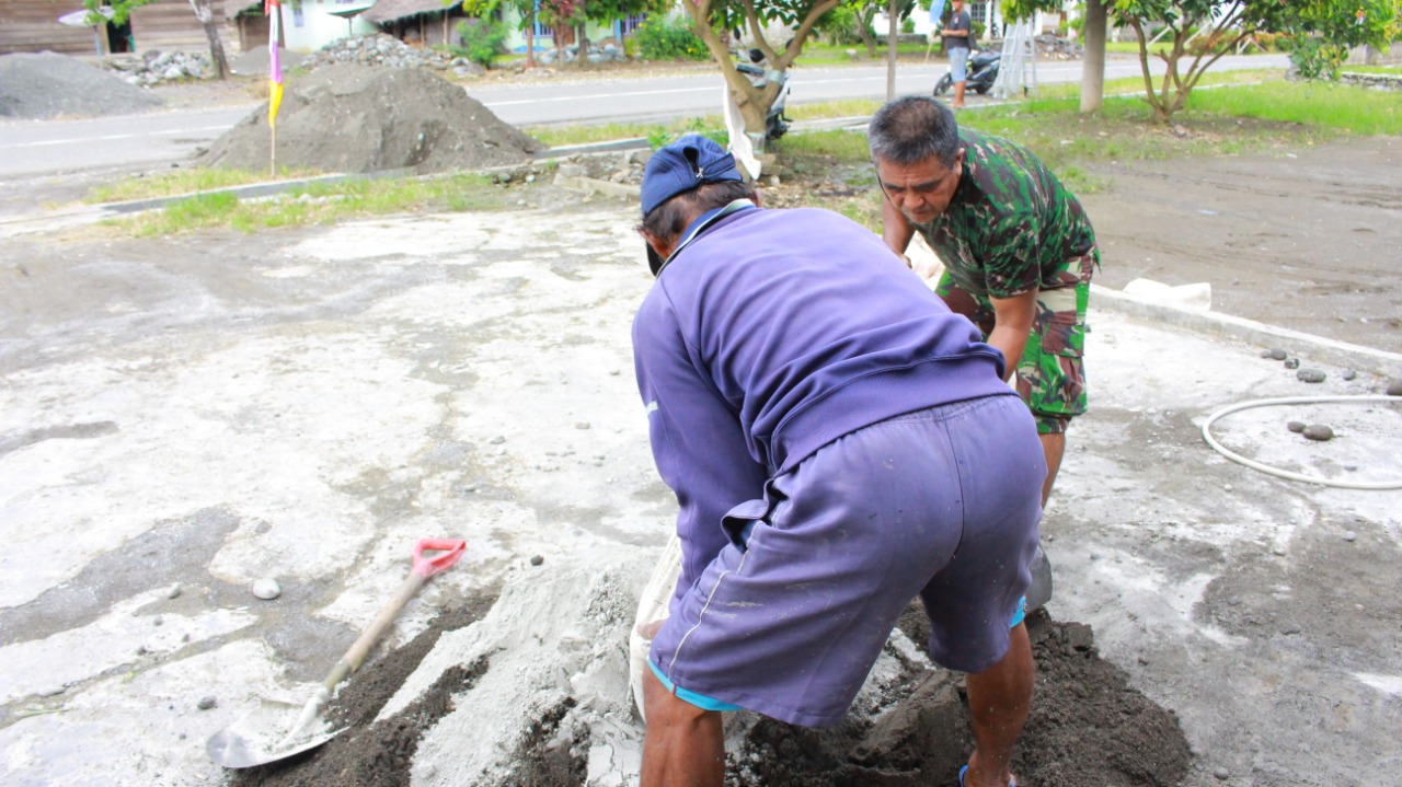 Banggai,- Dengan cara bergotong royong dan bahu membahu antara TNI dengan warga tetap nampak disaat kondisi seperti ini. Mereka mempunyai harapan agar pengerjaan yang dilakukan selesai tepat waktu.