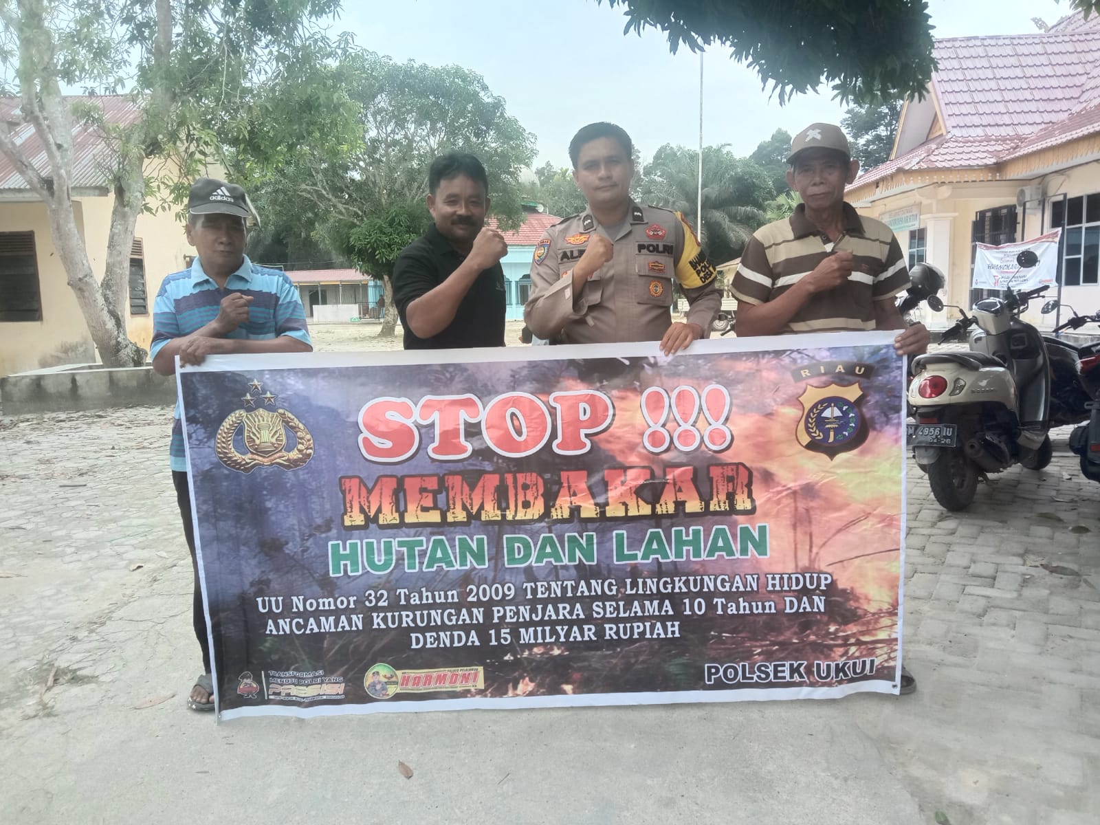 Gunakan Media Spanduk, Polsek Ukui Sosialisasikan Larangan Membakar Hutan Dan Lahan