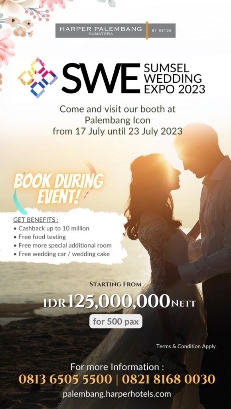 Ayo jangan sia-siakan kesmepatan untuk dapat mewujudkan pernikahan impian di hotel berbintang di Kota Palembang, untuk informasi lebih lanjut dapat mengubungi 0813 6505 5500 (April) / 0821 8168 0030 (Yenny) atau di official Instagram @harperpalembang. (rils)