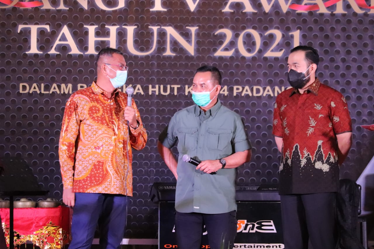 Padang, NewsHunter com — Wali Kota Riza Falepi menghadiri perayaan hari ulang tahun (HUT) Padang TV ke 14 tahun sekaligus Malam Anugerah Padang TV Award tahun 2021 yang digelar di Pangeran Beach Hotel, Kota Padang, Jumat (26/3).