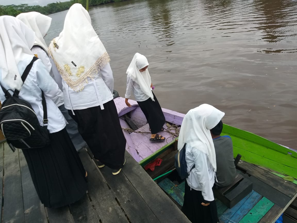 Kapuas, Antri naik perahu berseragam sekolah SMP. Itulah pandangn yang kita dapti ketika berada dipinggir sungai pada pagi dan sore hari. Anak anak SD maupun SMP berpacu dengan waktu dan arus sungai demi menempuh pendidikan.