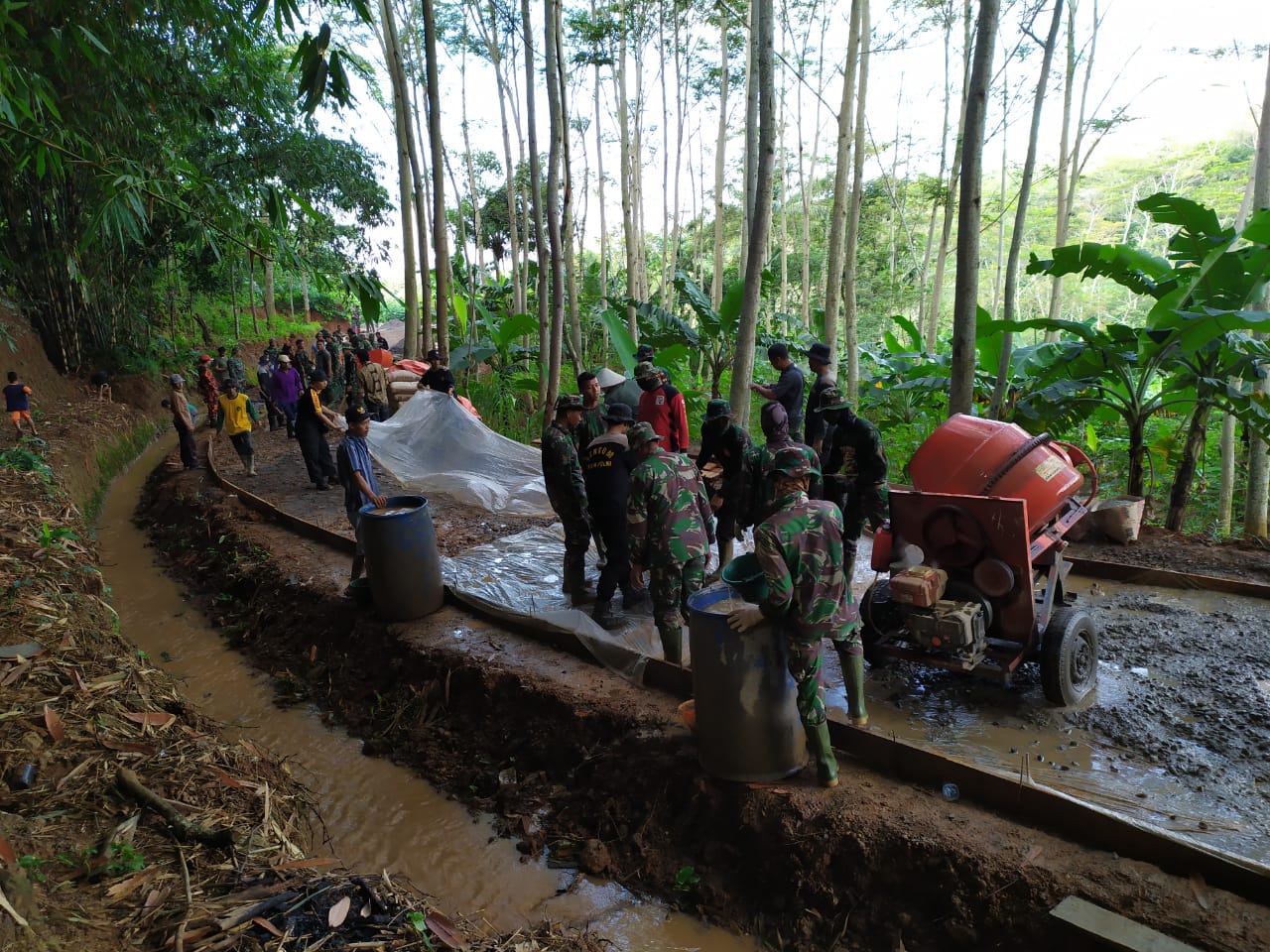 Kudus – Minggu biasanya dilakukan oleh pekerja maupun pegawai untuk meluangkan waktunya untuk keluarga berlibur, setelah selama sepekan bekerja.Namun lain halnya dengan yang dilakukan oleh para prajurit TNI Kodim Kudus yang tergabung Satgas TMMD Reguler ke -107 Kodim 0722/Kudus,tepatnya di Dusun Talun Desa Kedungsari Kecamatan Gebog,seperti biasa para Prajurit TNI melaksanakan aktivitas di lokasi sasaran fisik TMMD.Minggu 22/3/2020.