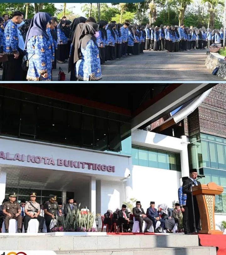 Wali Kota Bukittinggi, Ramlan Nurmatias, yang bertindak sebagai inspektur upacara, menekankan bahwa otonomi daerah tidak hanya sebatas pembagian kewenangan antara pusat dan daerah. Menurutnya, otonomi merupakan tanggung jawab besar dalam menciptakan inovasi pembangunan yang tetap selaras dengan arah kebijakan nasional.