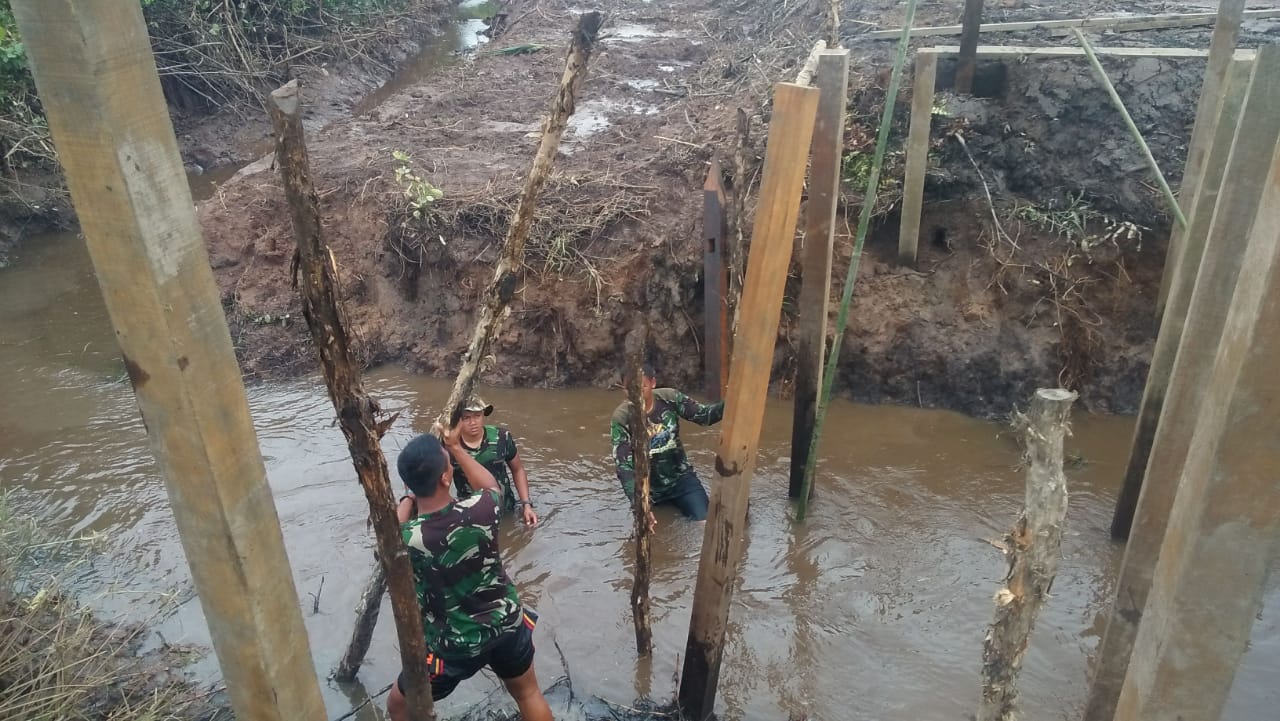 Kapuas, Tidak ada pekerjaan yang berat akan ringan bila dikerjakan seorang diri, namun bila pekerjaan berat dilakukan bersama akan membuat semuanya menjadi ringan. Itulah kerjasama antara TNI dan Warga saat melaksanakan pembuatan jembatan di Desa Terusan Raya maupun Desa yang lainya.