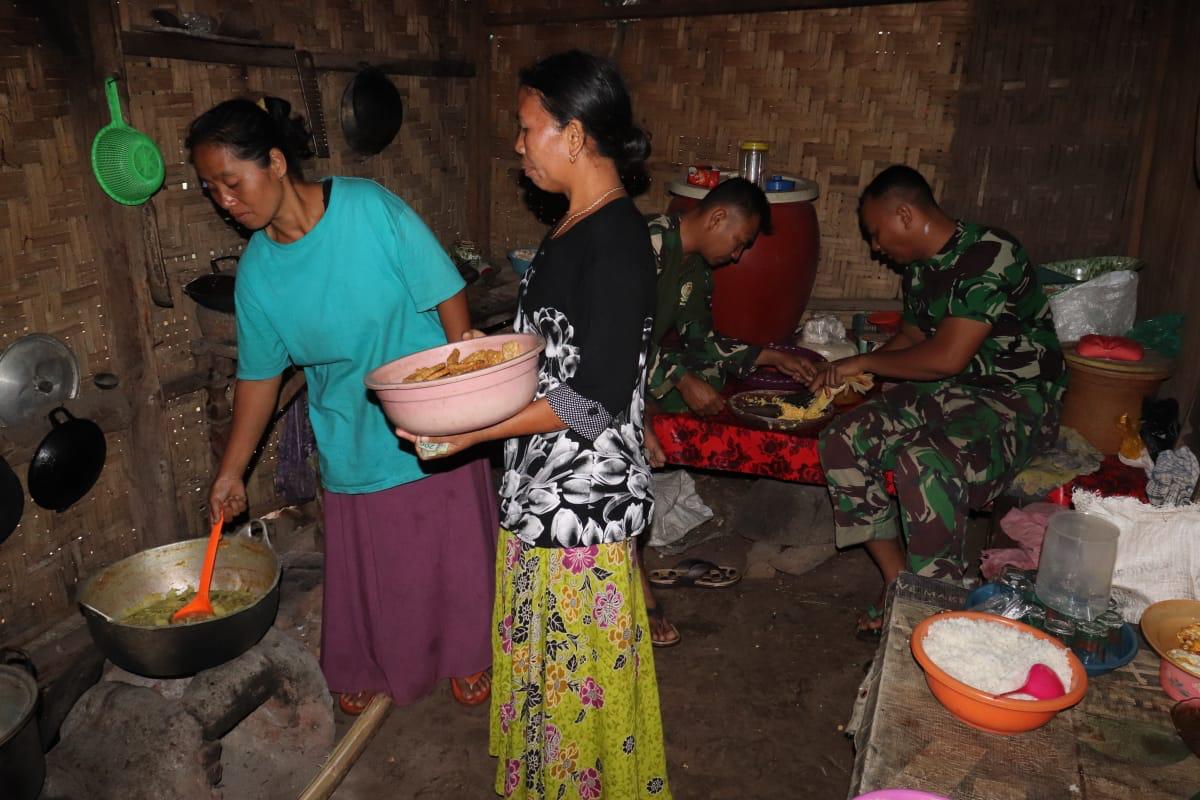 “Senang dan menyentuh sih, kami disambut baik, terlebih ibu-ini dengan rela menyiapkan makan untuk kami” ungka Pratu yulianto. (penrem 083/Bdj).