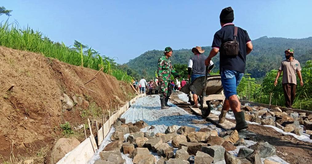 BANYUMAS – Didorong keinginan jalan di desanya yang sedang dibangun melalui