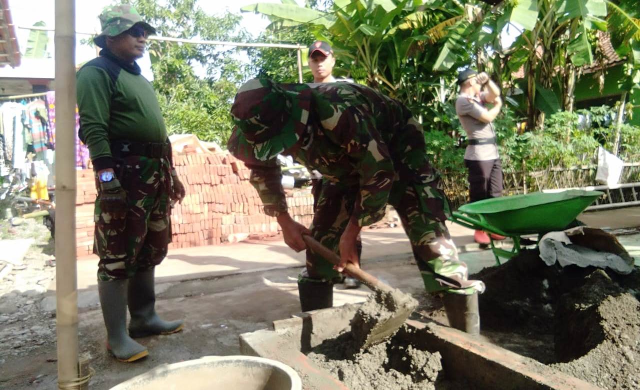 ”Untuk membuat adonan semen campur pasir, utamanya ukuran yang pas, saya awalnya buta. Hanya karena diajari tukang yang warga desa sasaran TMMD, kini saya ahli membuat adonan yang akan digunakan untuk memasang bata tembok rumah,” ujar Sertu Fatoni, yang ditemui di lokasi perehabpan rumah Supardi (77), warga Dukuh Pepedan Rt 03/ RW 05, Desa Pantirejo.