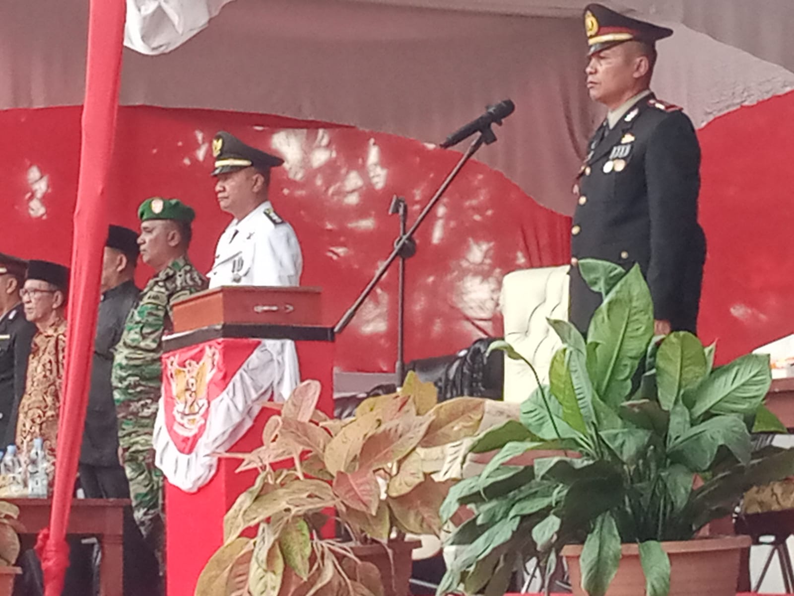 Upacara berlangsung di Lapangan Astaka Kantor Camat Bandar Sei Kijang Kabupaten Pelalawan, Kamis (17/8/2023).
