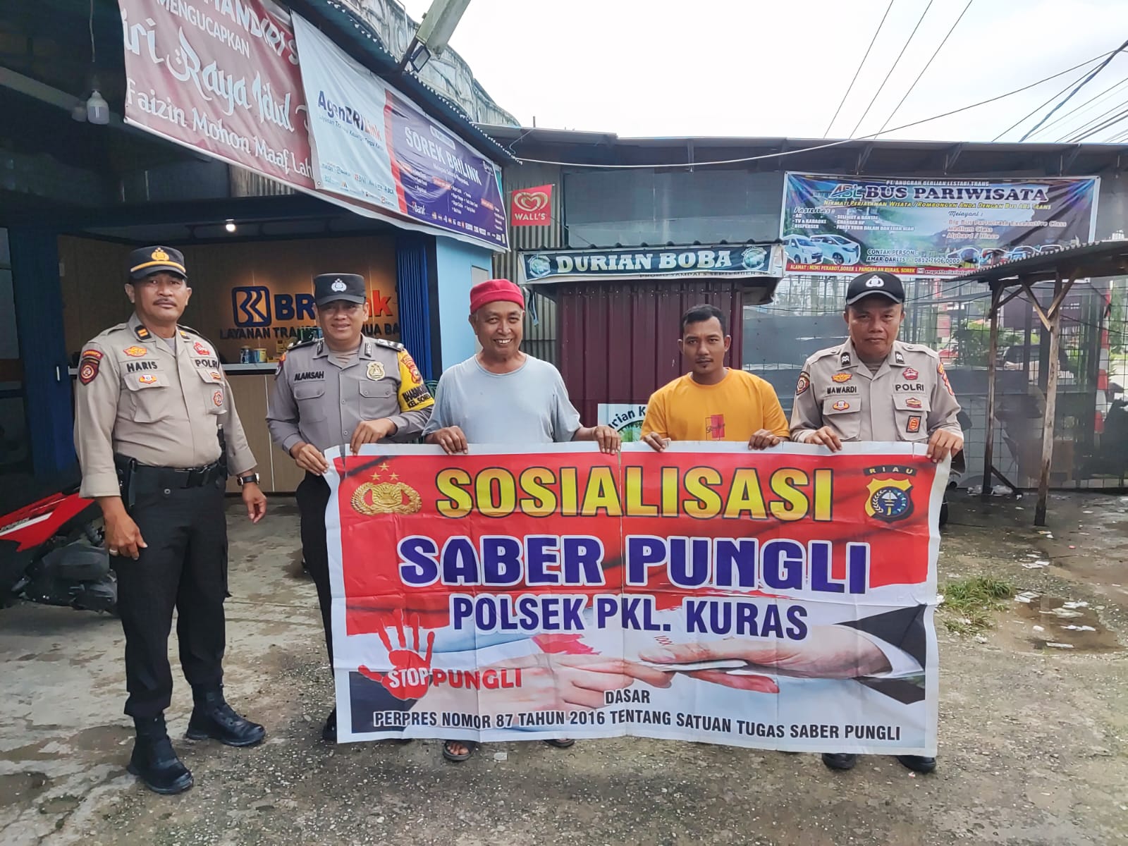 PELALAWAN, NEWSHANTER.COM – Ciptakan Pemilu Damai Tahun 2024, sejumlah personel Polsek Pangkalan Kuras, Polres Pelalawan, menggelar sosialisasi sapu bersih pungutan liar (Saber Pungli) kepada masyarakat di Kelurahan Pangkalan Kuras, Selasa (16/1/2024).