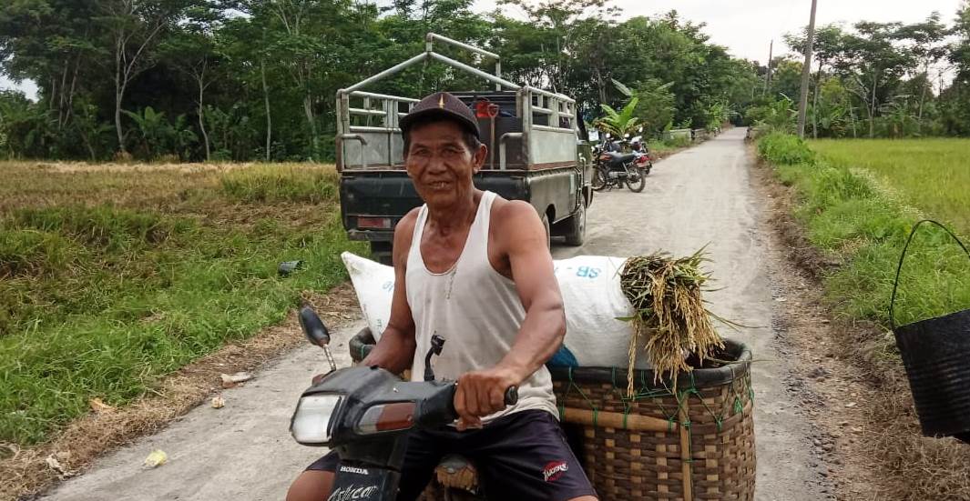 Siang itu, Warjun tengah mengusung gabah yang ditempatkan dalam karung dan dibonceng dengan sepeda motor. ”Kalau nanti jalan sudah selesai dibangun semua oleh Pak Tentara, tentu saya dan warga lainnya tidak akan lagi kesulitan saat akan membawa pulang hasil panenan dari sawah,” tambahnya.