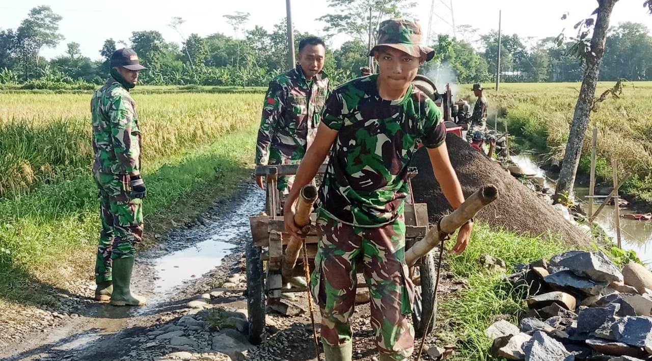 Semisal, lanjut Babinsa Sutrisno, alat tersebut tidak ada, dipastikan langsir material, baik berupa batu, adonan akan mengandalkan otot satgas TMMD maupun warga masyarakat.