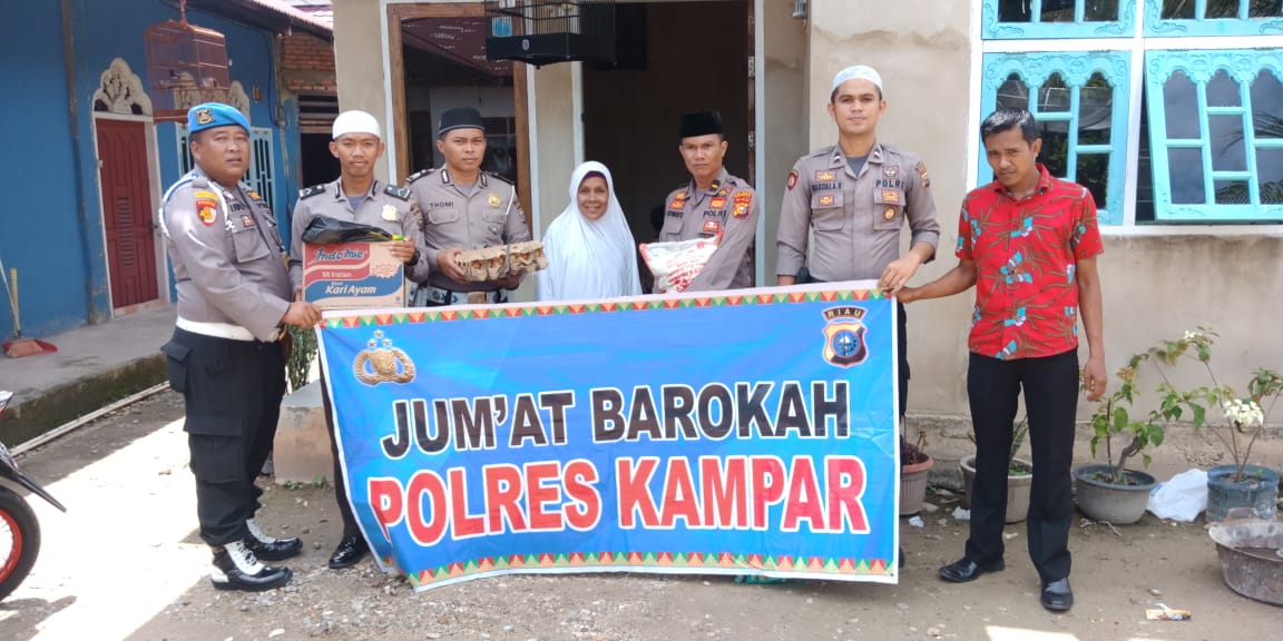Sekira pukul 11.30 wib, Tim Jumat Barokah Polres Kampar berangkat dari Mapolres menuju Jalan Ahmad Yani Kelurahan Langgini Bangkinang Kota untuk memberikan bantuan kepada dua keluarga kurang mampu yang ada di daerah tersebut.