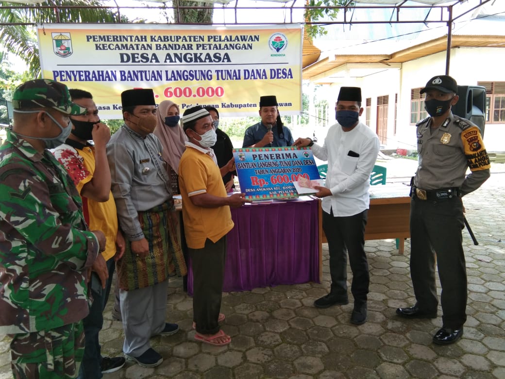 PELALAWAN, NEWSHANTER.com – Pemerintah Desa Angkasa Kecamatan Bandar Petalangan Kabupaten Pelalawan Provinsi Riau bagikan Bantuan Tunai Langsung Dana Desa (BLT-DD). Kegiatan ini dilaksanakan didepan Kantor Kepala Desa setempat, Jumat (12/6/2020).