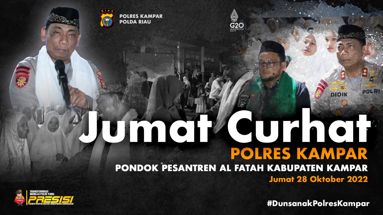 KAMPARUTARA,newshanter.com – Kapolres Kampar AKBP Didik Priyo Sambodo SIK bersama jajarannya mengunjungi Pondok Pesatren Al Fatah dalam rangka Haul Pendiri Pondok Pesatren Al Fatah Desa Sendayan, Kecamatan Kampar Utara dengan tema Jum’at curhat bersama Kapolres Kampar, Jum’at (28/10/2022) sekira pukul 19.30 WIB.