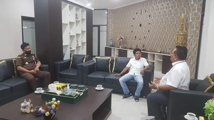 Ternate, NewHanter.com – Kepala Kejaksaan Tinggi Maluku Utara (Kajati Malut) DR. Erryl Prima Putra Agoes, SH, MH didampingi Kabag TU Ginanjar, SH, MH dan Kasi Penkum Richard S, SH, MH menerima kunjungan Ketua Komite Nasional Pemuda Indonesia (KNPI) Provinsi Maluku Utara Irman Saleh S.IKom, diruang kerja Kejati Malut, Rabu (19/08/20).