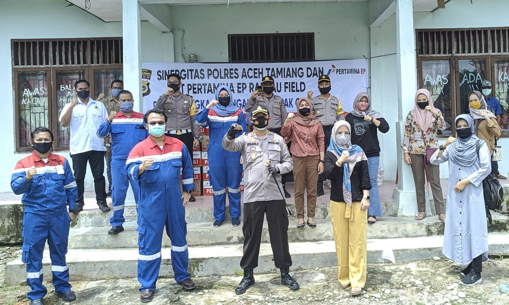 Kapolres Aceh Tamiang AKBP Zulhir Destrian,S.Ik ,SH, M.H, bersama Pertamina EP Rantau Melaksanakan program Bakti Sosial khusus nya pada masyarakat miskin dan masyarakat yang kurang mampu, Yang belum Terdata program bantuan sosial tersebut dari Pemerintah.