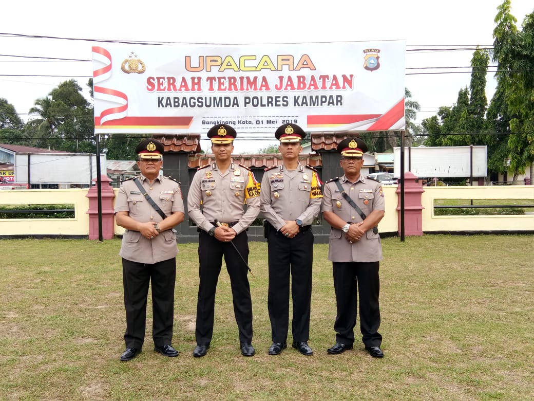 Serahterima Jabatan ini ditandai dengan pelepasan tanda jabatan dari pejabat yang lama dan pemasangan tanda jabatan kepada pejabat yang baru oleh Kapolres Kampar.