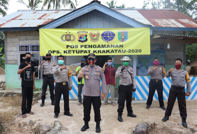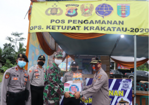 Kapolres Lampung Barat (Lambar) berikan bingkisan pada anggota yang tengah piket di Pos Pam Ops Ketupat Krakatau 2020.