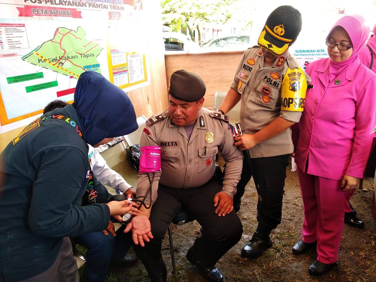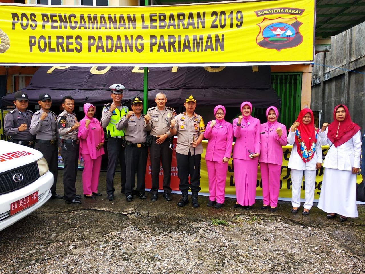 Padang Pariaman, Newshanter.com – Kapolres Padang Pariaman AKBP Rizki Nugroho, SE, MMTr didampingi Ketua Bhayangkari Cabang Padang Pariaman Ny. Reni Rizki Nugroho bersama Pengurus Bhayangkari serta Paurkes Polres Padang Pariaman Aiptu Febri Hendri menyambangi seluruh Pos Pengamanan (Pospam) dan Pos Pelayanan (Posyan) arus mudik dan balik lebaran Idul Fitri 1440 H yang tersebar di Wilayah Hukum (Wilkum) Padang Pariaman, Sumatera Barat, Senin (3/6/2019).