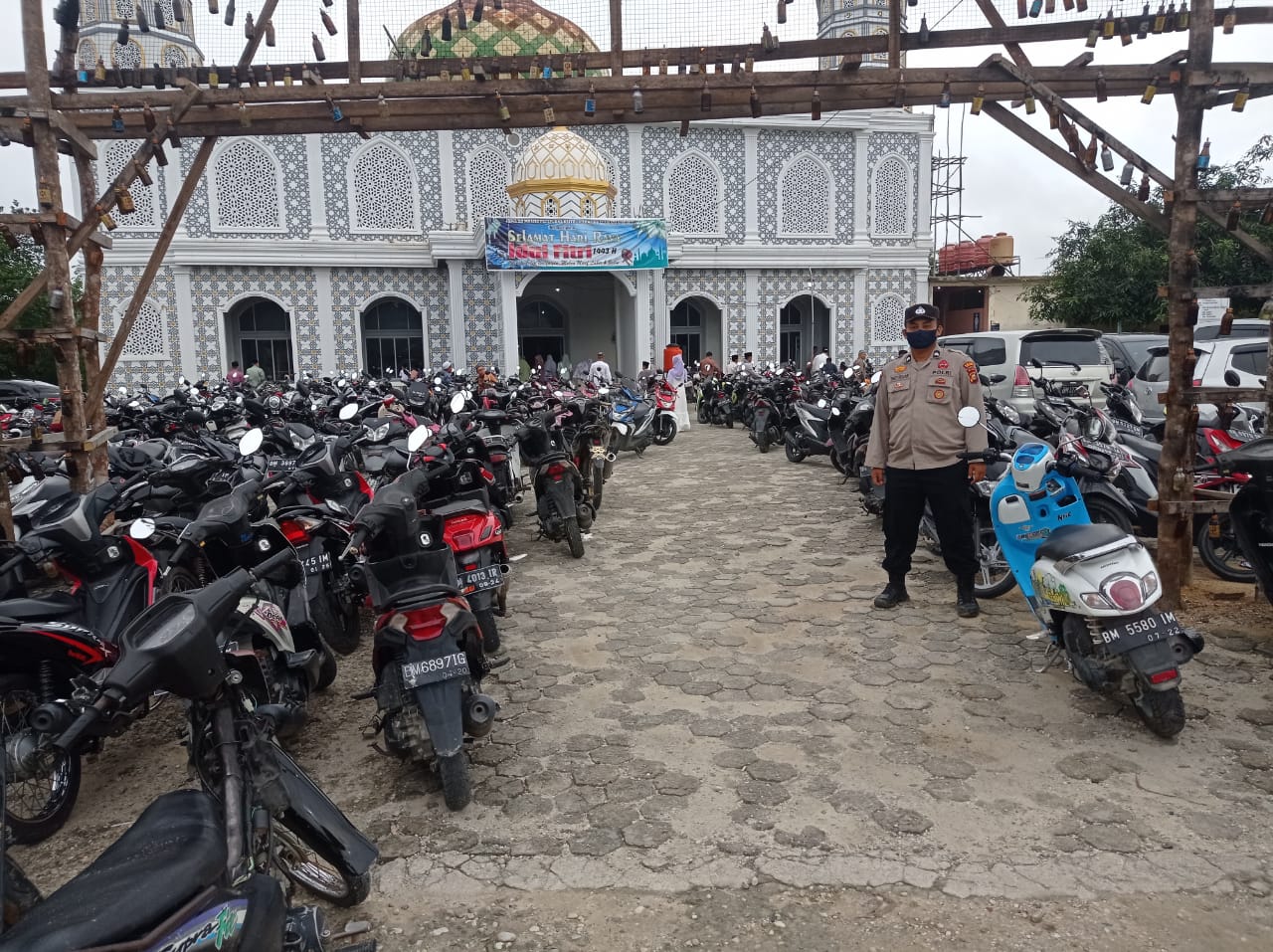 PELALAWAN, NEWSHANTER.COM – Kapolsek Bunut AKP Daniel Selamat Nainggolan dan Ps. Kanit Intelkam Aipda E. Damanik beserta personil Polsek Bunut melakukan pengamanan Ibadah Sholat Idul Fitri 1443 H, di beberapa Masjid di wilayah hukumnya, Senin (2/5/2022).
