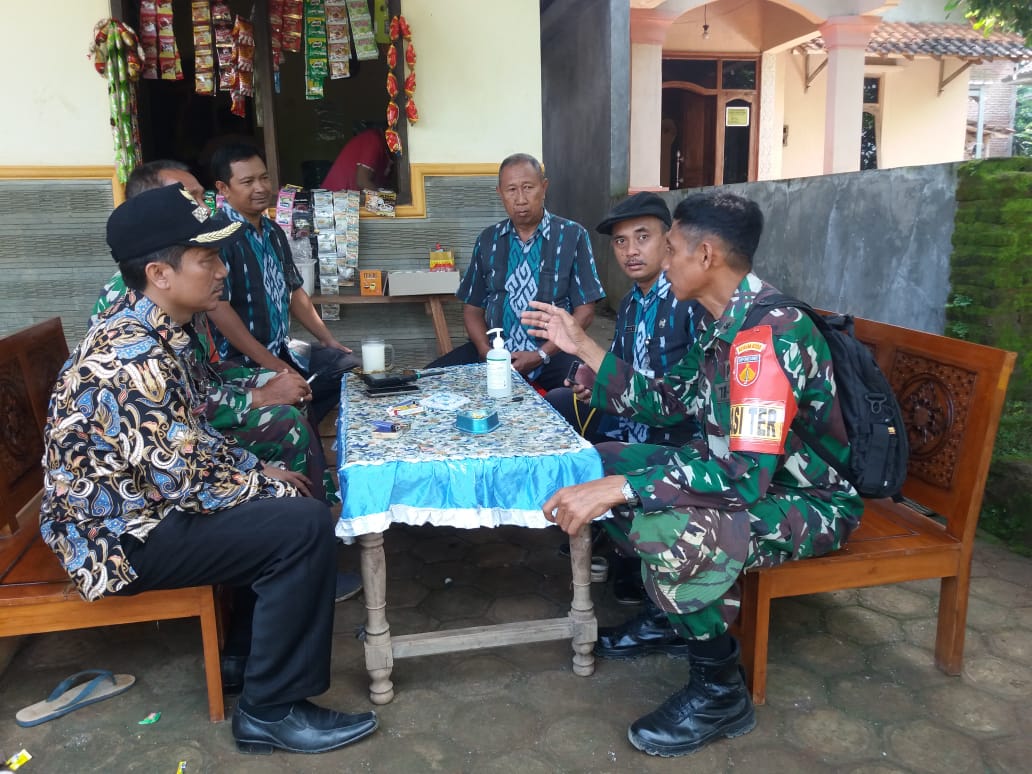 Kudus – Anggota Satgas TMMD Reguler ke-107 Kodim 0722/Kudus, melaksanakan Komsos dengan Bapak Ajis, tokoh Dukuh Talun, Desa Kedungsari, Kecamatan Gebog, Kabupaten Kudus, Selasa (31/03/2020).