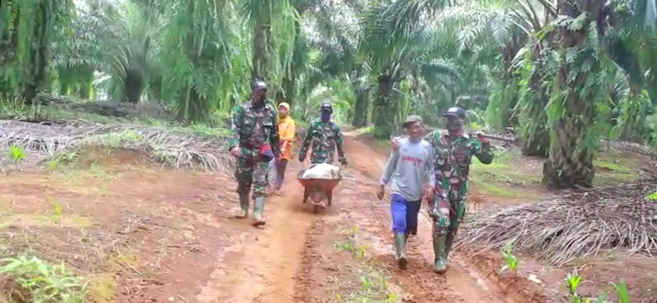 Dalam jelang penghujung penutupan, bahkan Satgas TMMD masih dapat melaksanakan pekerjaan membantu warga dalam mengangkut plasma sawit milik warga.