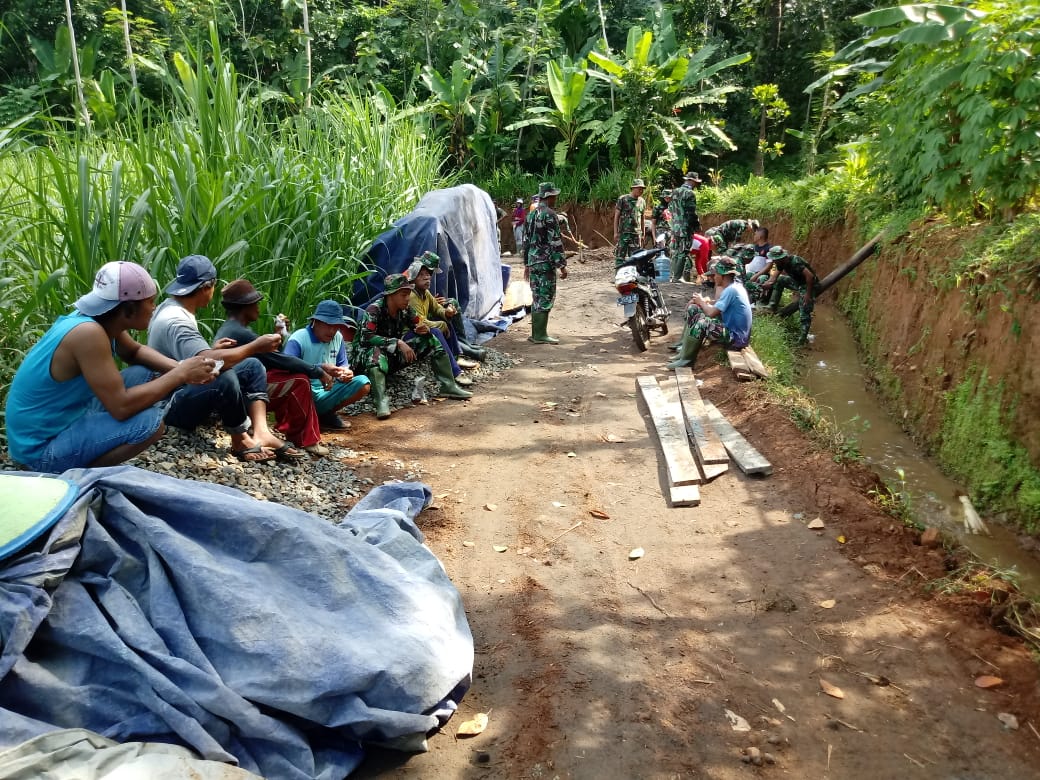Kebersamaan Satgas TMMD Bersama Warga Saat Istirahat Sejenak