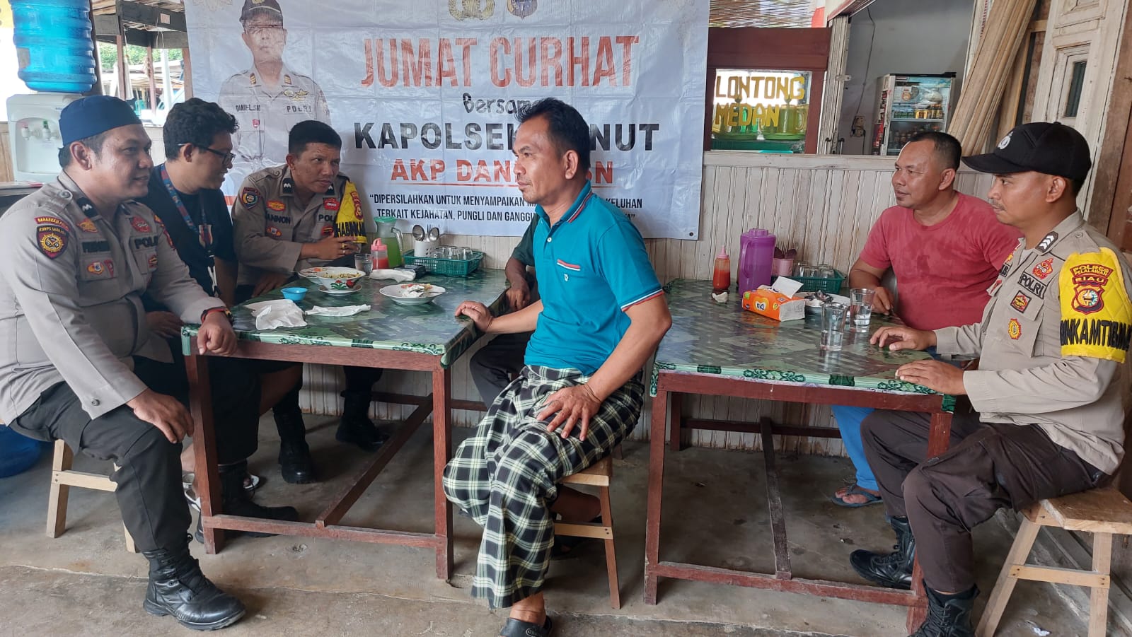 PELALAWAN, NEWSHANTER.COM – Jumat Curhat Polsek Bunut jajaran Polres Pelawan Polda Riau, di Warung 1212 Pangkalan Bunut Kecamatan Bunut Kabupaten Pelalawan, Jumat (17/11/2023).